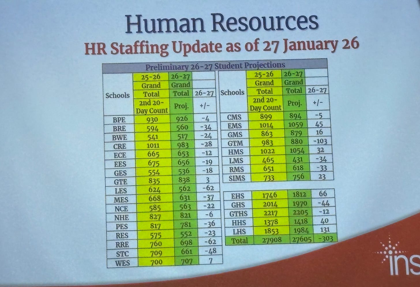 Schools will receive enrollment and staffing projections soon to develop site-based staffing plans