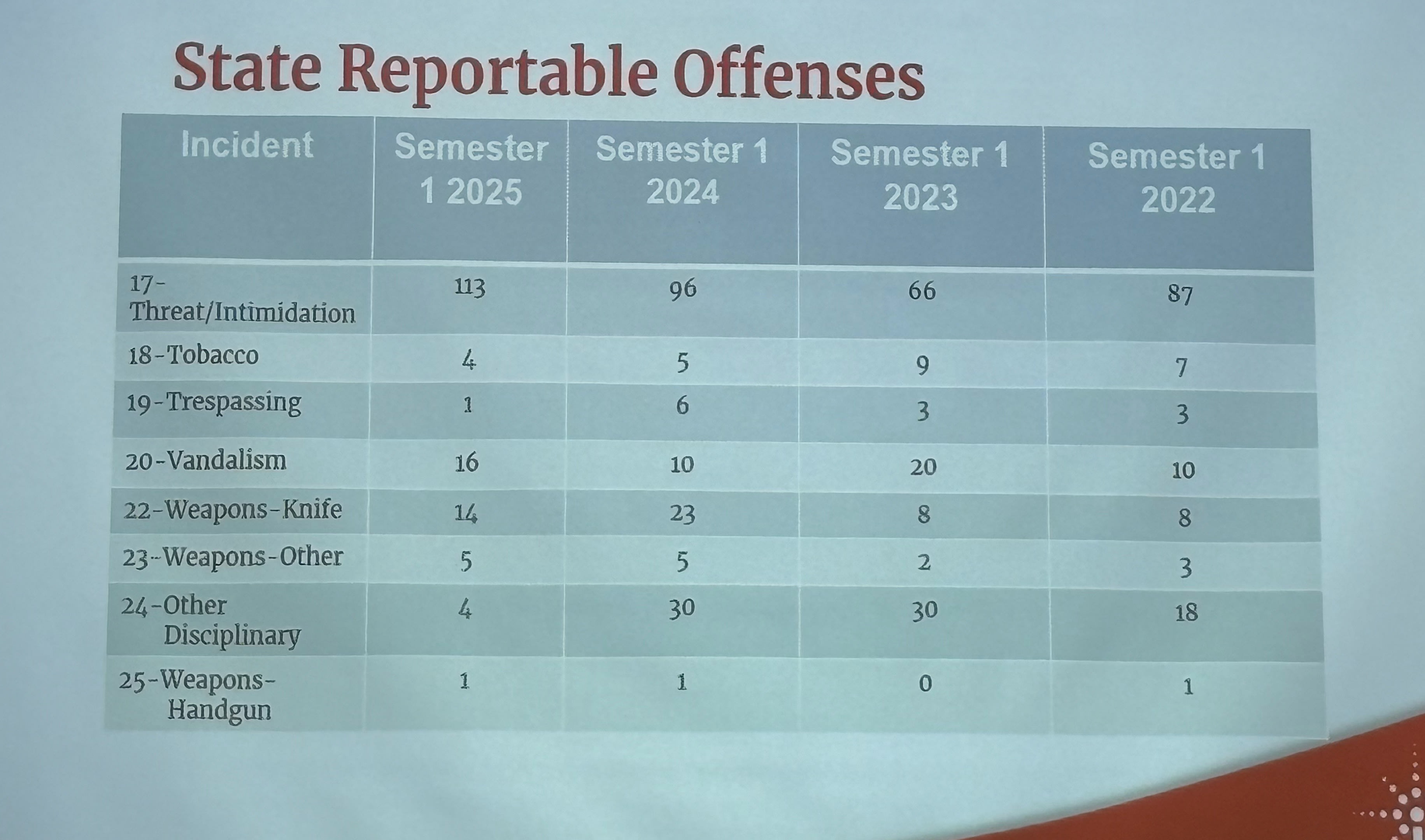District reports a firm but supportive approach to student behavior, with heightened attention to threat assessment and drug-related offenses