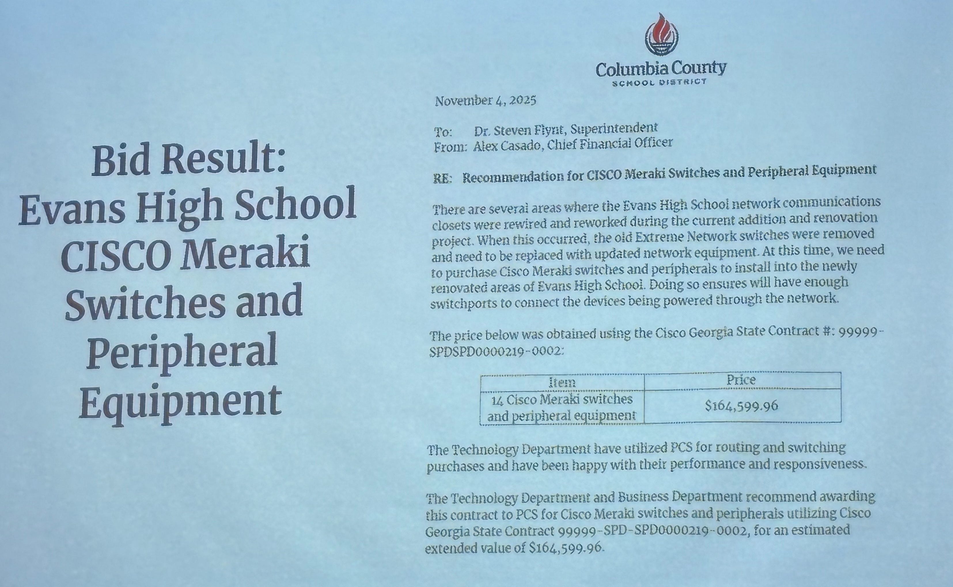 Flynt: As you know, we’ve been preparing to issue general obligation bonds to fund much needed improvements, which will start with Harlem High School. The design funding, as you also know for Harlem High School was previously approved, and you’ve seen a number of those renderings, and we’re looking forward to once this passes. Starting construction... We successfully bid the sale and secured great pricing at 3.79%. So congratulations on that. Much of that goes back to the financial stewardship of this district over a long period of time. And you were able to read through the ratings that we were provided for both Moody’s and Standard and Forest, and we were very excited to see those so strong. We also have an amazing team who did this work. I’d like to thank a couple of them before we get to the. To the vote on this. Jamie Wilson, who is our advisor. Ken Pollock with Butler Snow, who’s our bond attorney. Larry Fletcher, general counsel is in the room. And of course, Alex Cassado, our cfo. Great team. I know there’s a lot of others that helped, but we’re very honored to be able to work with this group and get such a very good pricing. So at this time, we ask that you adopt the required resolution that authorizes the issuance and sale of $180 million in bonds.